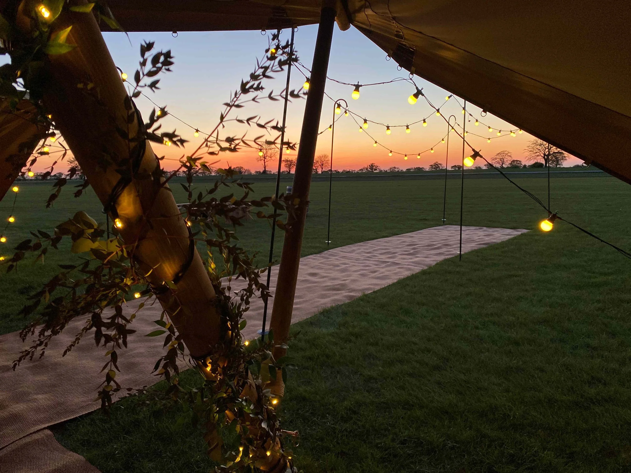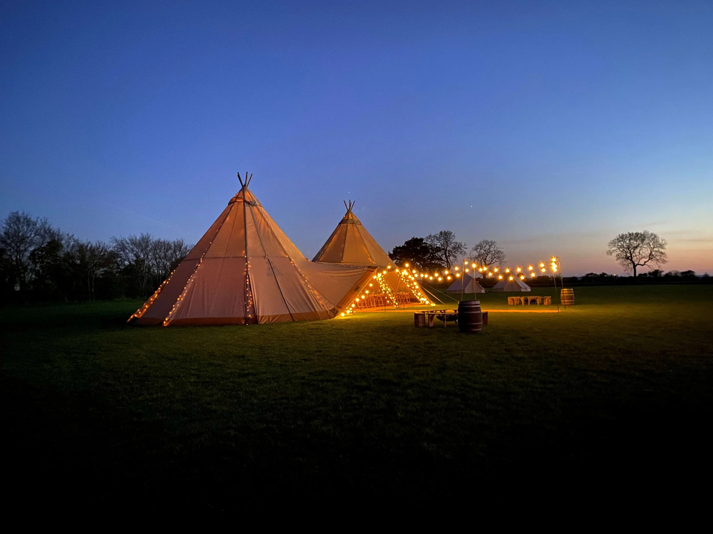 All our Tipi hire prices include mat flooring throughout, warm white fairy lights down the tipi poles, uplighters in each tipi tent and VAT.